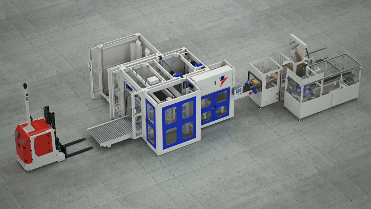 The end of line system was designed and implemented using seven technological solutions, among the fastest and most advanced of the entire range of products available within the Group. Let us see which ones: Depalletisers, tray packers, palletisers and wrapping machines from OCME and Robopac.